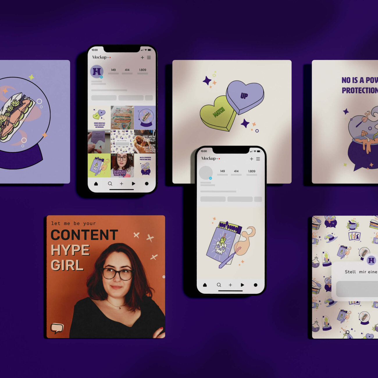 Das Ziel war, die Einzigartigkeit des Hexenzirkels, das Engagement und die Persönlichkeit der Gründerin durch handgezeichnete Illustrationen und ein stimmiges Branding sichtbar zu machen.