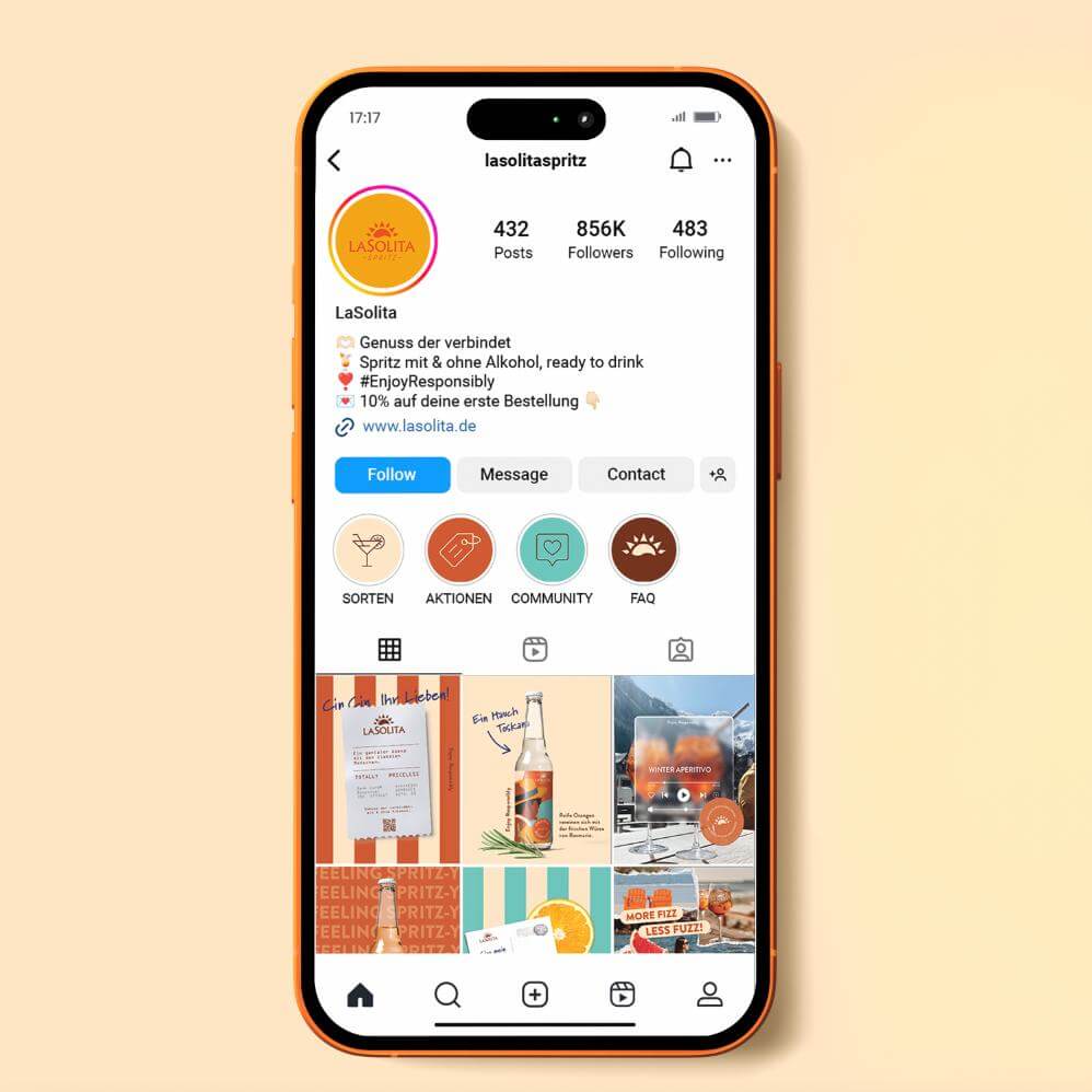 Für La Solita wurde ein Shopify-Shop erstellt, der Storytelling und Funktionalität verbindet. Ergänzend dazu entstand ein Social-Media-Design-System, das die Markenwelt kanalübergreifend konsistent abbildet, beispielsweise auf Instagram oder Pinterest. Ein besonderer Fokus lag auf der barrierearmen Anpassung der Farbwelt, damit der Auftritt nicht nur emotional, sondern auch zugänglich bleibt, sowie einem Social Media Design, das sich deutlich von generischen Canva Vorlagen abhebt.