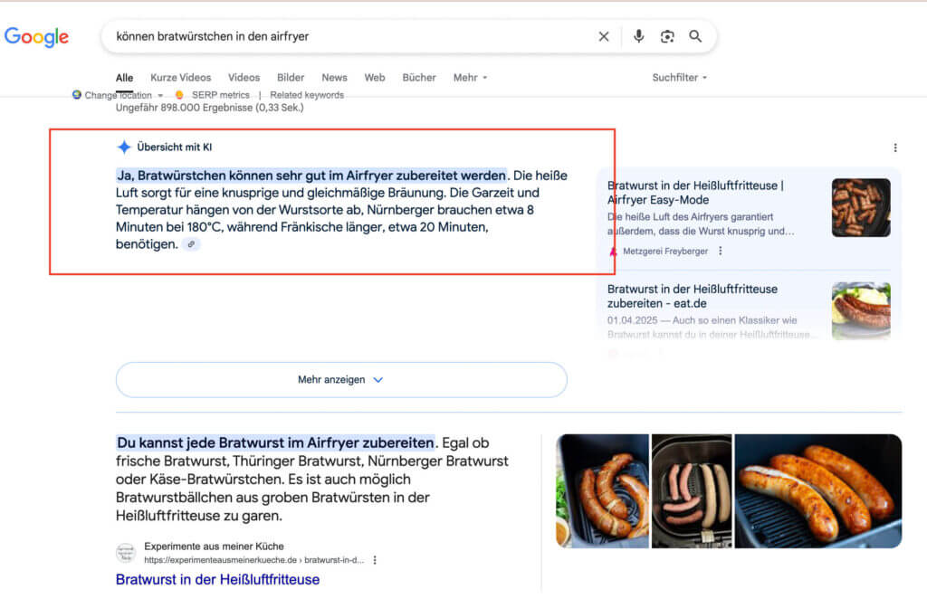 Denn im Jahr 2026 reicht es nicht mehr, nur auf Traffic zu optimieren. Es geht um Relevanz entlang der Customer Journey – vom ersten „Oh, interessant“-Impuls bis zur konkreten Kaufentscheidung. Ein Schlüssel dazu: transactionale und navigationale Keywords. Die bringen organisch vielleicht weniger Traffic als informative Keywords, holen dafür aber die Menschen ab, die in der Kaufentscheidung schon weiter sind und eine echte Handlungsabsicht haben. Transactionale und navigationale Keywords machen dich für Menschen sichtbar, die gewillter sind, dein Angebot zu kaufen. Du arbeitest so also nicht nur an nachhaltiger Sichtbarkeit, sondern auch mehr Umsatz für dein Unternehmen. Du erreichst Menschen, die konkret nach deinem Angebot suchen und nicht googeln, „wie lange man Bratwürstchen im Airfryer lassen muss“. (Das google ich tatsächlich oft, weil meine Tochter die gern isst, wenn sie im Airfryer ohne Fett gebraten werden. Ich bekomme das Ergebnis direkt per Übersicht mit KI und muss mir die Infos nicht mehr auf der Website holen.)